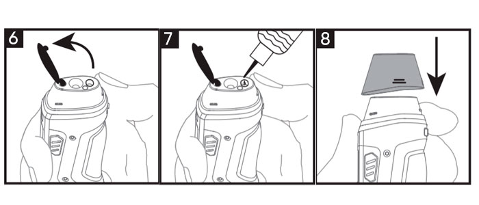 6. Откройте резиновую заглушку, чтобы получить доступ к отверстию заправки.
