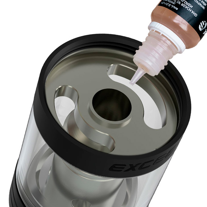 6. Joyetech Exceed D19 готов к использованию. Для парения нажимайте кнопку Fire одновременно с затяжкой. При помощи вращения кольца регулировки затяжки, затяжку можно сделать более тугой или свободной. Для замены испарителя необходимо открутить часть атомайзера, которая находится под крышкой заправки.