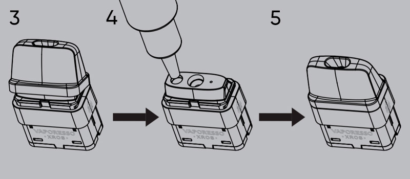 3. Снимите дриптип с картриджа, для этого надавите на дриптип в горизонтальном положении.