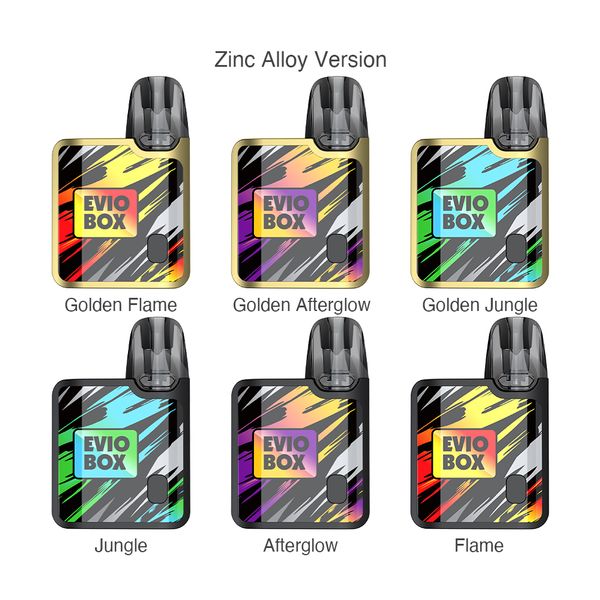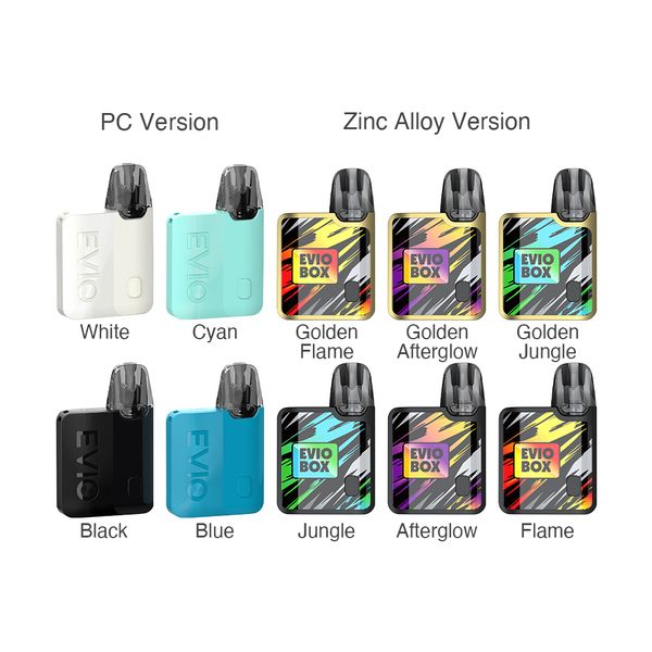 Сильной стороной Evio Box является наличие технологии, защищающей испаритель от перегорания. Если жидкость в картридже закончилась, то вейп завибрирует при попытке сделать затяжку и отключится. При помощи единственной кнопки на корпусе можно включить или выключить устройство и выбрать один из трех уровней мощности. Использовать вейп можно нажимая на кнопку или просто делая затяжку. За питание отвечает емкий аккумулятор на 1000 мАч, который заряжается всего за 30 мин.