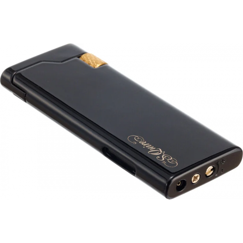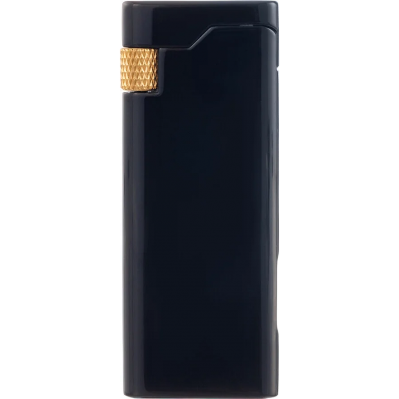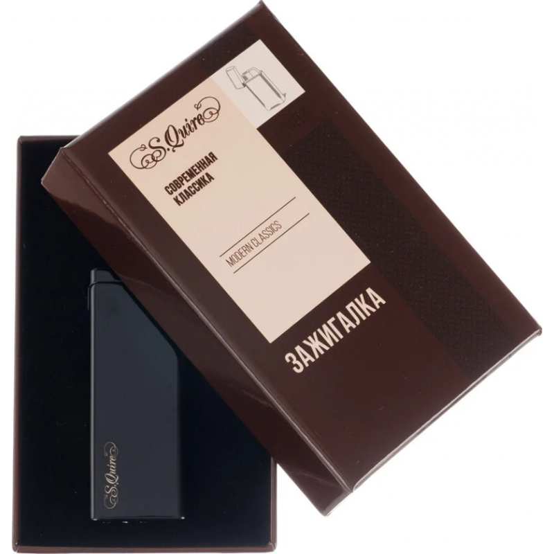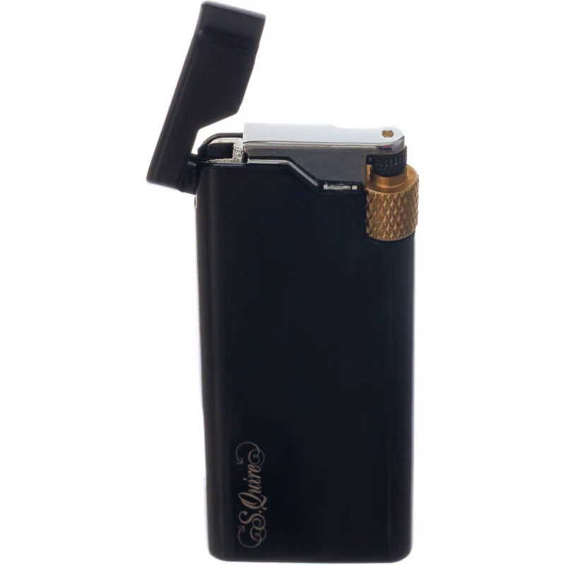 Стильная кремниевая зажигалка S.Quire с тонким корпусом черного цвета с золотой каймой. Предусмотрена возможность дозаправки и регулировки пламени, также на корпусе есть удобное окошко для просмотра уровня газа.