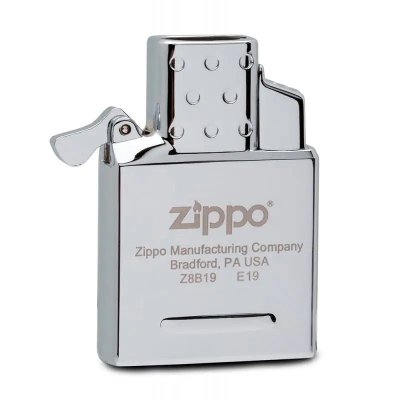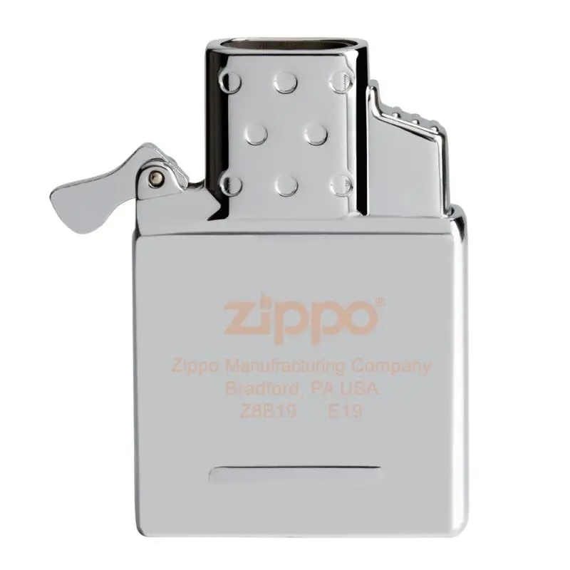 Оригинальный газовый модуль-вставка Zippo США 65827 (double flame 2006816) - альтернатива замены бензинового блока. Полностью металлическая конструкция, которая обеспечивает идеальную посадку в корпус Zippo. Подходит для всех классических зажигалок Зиппо, кроме Slim и Replica. Двойное газовое сопло - голубое турбопламя. Электро-кварцевое зажигание - кнопочное пьезовоспламенение.