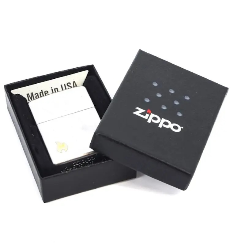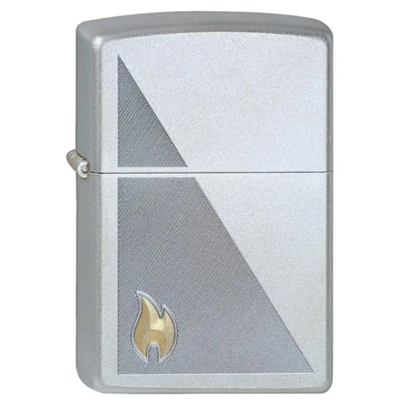 Zippo Flame Satin Chrome - традиционная зажигалка с блестящим покрытием, которое не бликует при солнечном свете и имеет бархатистую структуру на ощупь. На лицевой стороне изображена эмблема золотистого пламени, которая успешно акцентирует внимание на серебристом цвете корпуса.