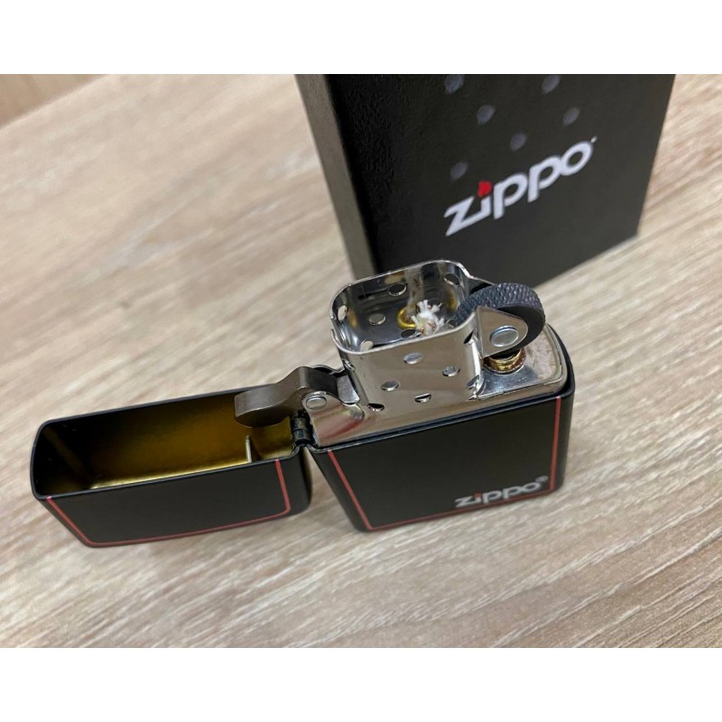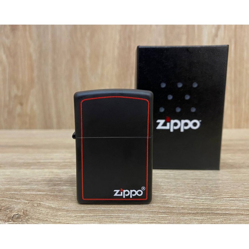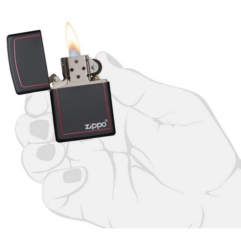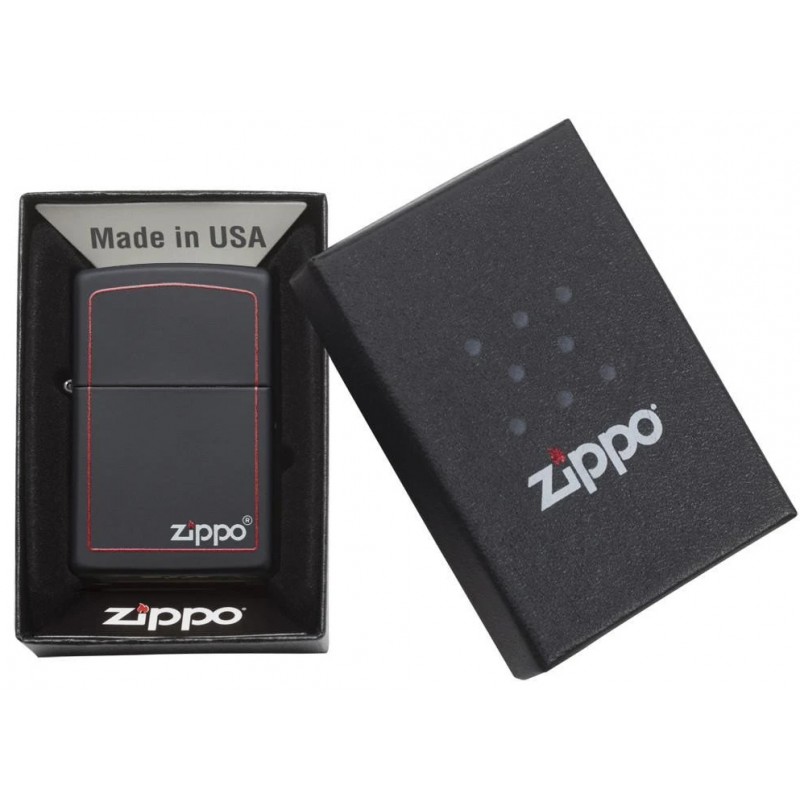 Зажигалка ZIPPO Classic с покрытием Black Matte, латунь/сталь, чёрная с фирменным логотипом и красной окантовкой, матовая, 38x13x57 мм Black Matte